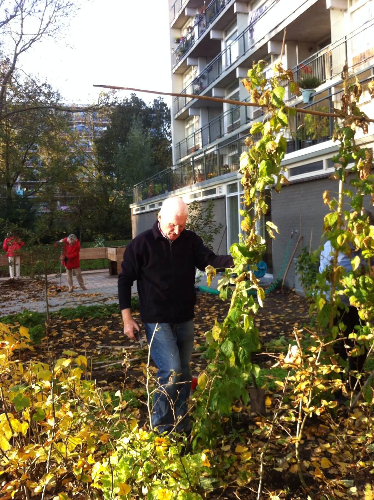 Geklemd tussen het eeuwenoude water van de Grift en de uit 1970 stammende flat de Grift, bevindt zich onze onovertroffen moestuin. Dit weelderige stukje overvloed wordt met veel liefde en toewijding onderhouden door een stel uiterst groengevingerde vrijwilligers. En dat blijft niet onopgemerkt. Elke keer wanneer Griftenaren hun boodschappen doen bij grootgrutter Heijn, lopen ze langs de tuin en je begrijpt dat een praatje gauw is gemaakt. Het is een uiterst goed-humeur bevorderende aangelegenheid zo’n tuin. En de opbrengst, die heel behoorlijk is na één seizoen(!), is dan natuurlijk geen vervelende bijkomstigheid!